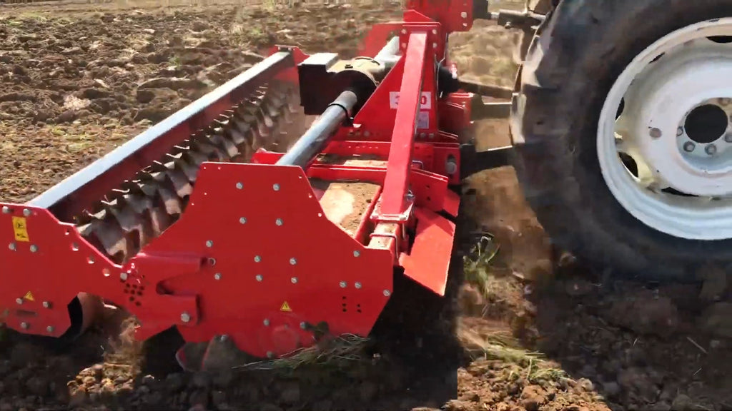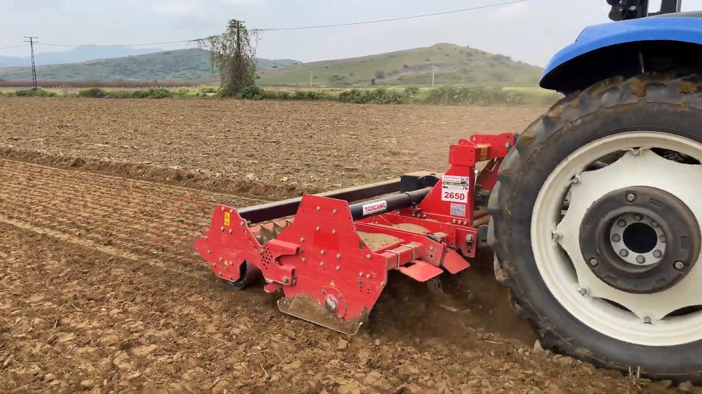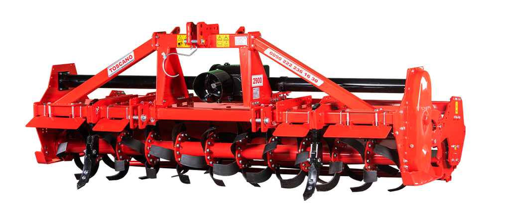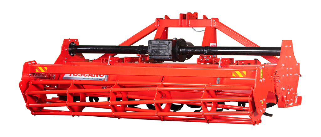 The Toscano Standard Rotary Tiller is a versatile and efficient tillage machine designed to revolutionize soil preparation for modern farming. Featuring horizontally rotating blades, this rotavator mixes the soil from bottom to surface, aerating it and creating a flawless seedbed. Its design ensures the homogeneous mixing of plant residues and weeds into the soil, enriching its structure and boosting productivity. The cage roller levels the soil to ensure a smooth and flat surface, maximizing seed-to-soil contact for optimal germination.The Toscano Standard Rotary Tiller operates seamlessly with tractors requiring 48-97 kW / 65-130 HP, making it suitable for diverse agricultural tasks and delivering reliable performance.